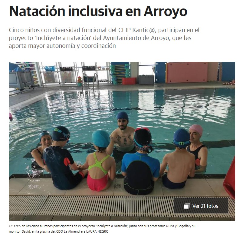 Nuestros niños vuelven a aparecer en El Norte de Castilla con el proyecto «Inclúyete a natación». Los padres no podemos estar más agradecidos a sus profes Nuria y Begoña por hacerlo posible. ¡Son felices en el agua!